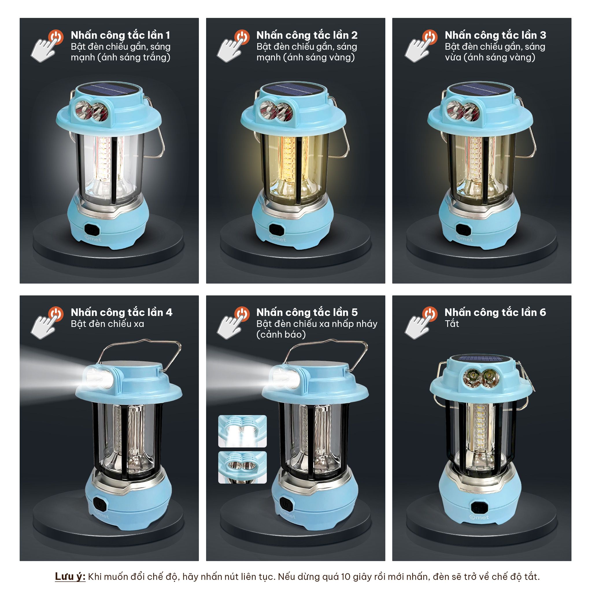 - Công tắc nút bấm tiện lợi: Dễ dàng thao tác chuyển đổi giữa các chế độ chiếu sáng.